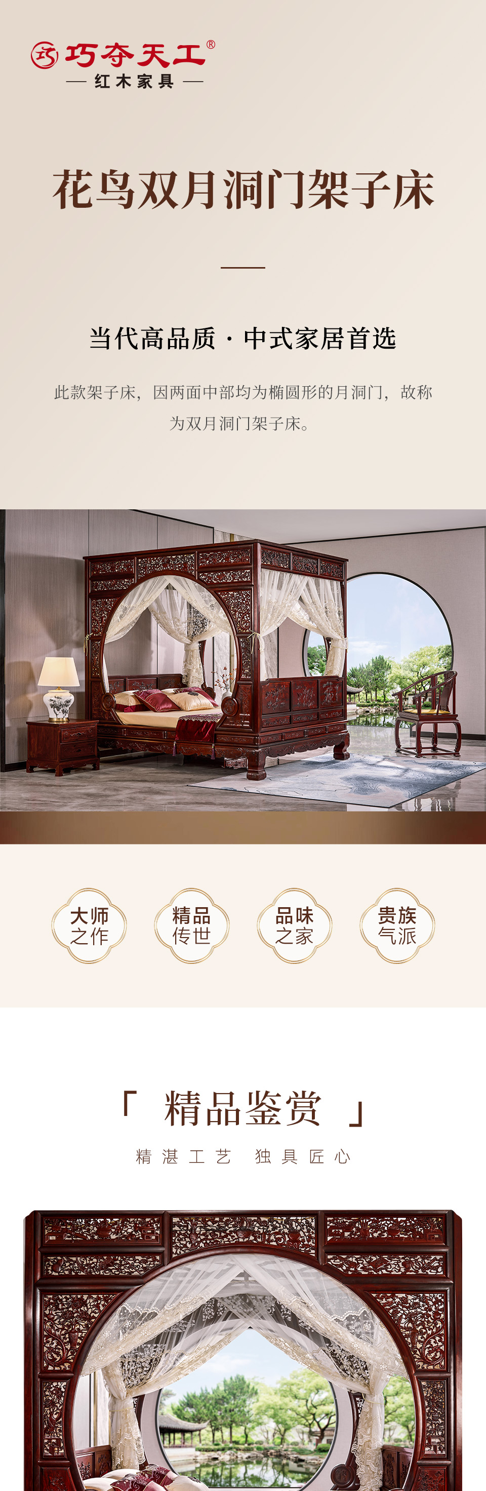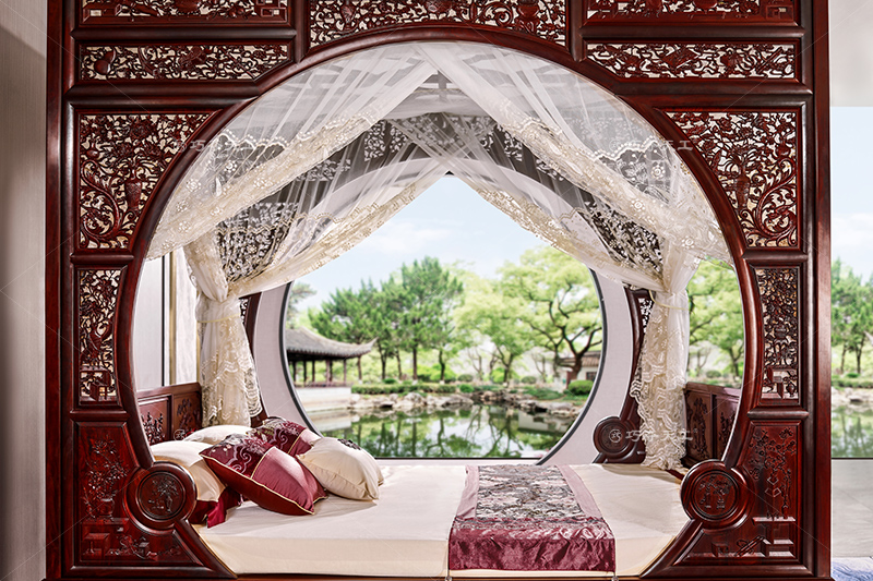 花鳥雙月洞門架子床